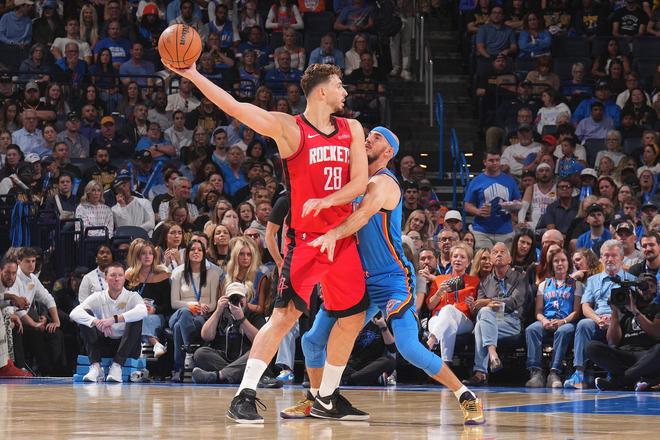 火箭隊的杜蘭特上半場得到14分和5個籃板,申京得到10分、5個籃板和5次助攻,湯普森得到10分和4次助攻;雷霆隊的霍姆格倫得到18分和4個籃板,米切爾得到12分,亞歷山大5投2中得到5分、3次失誤。